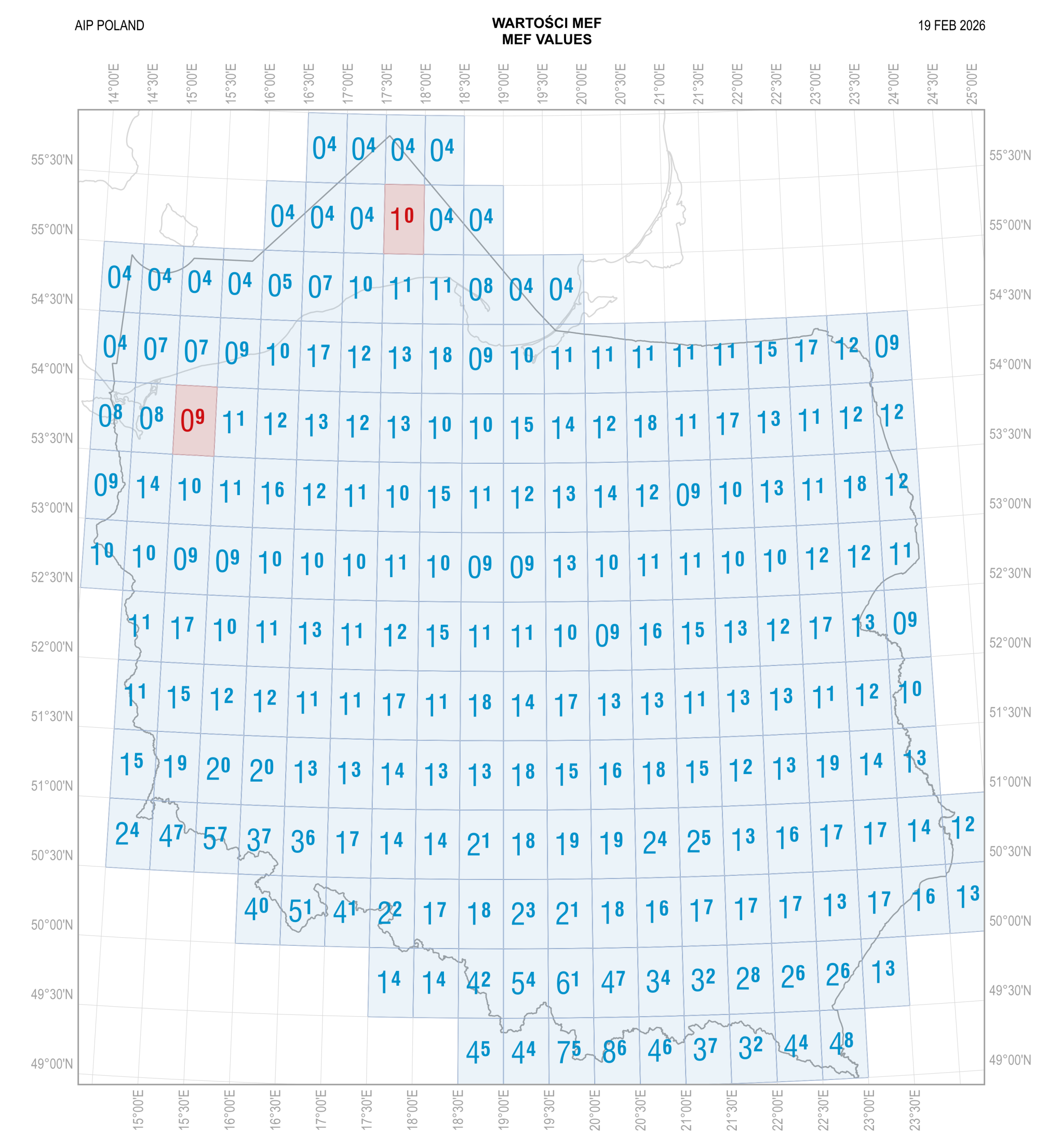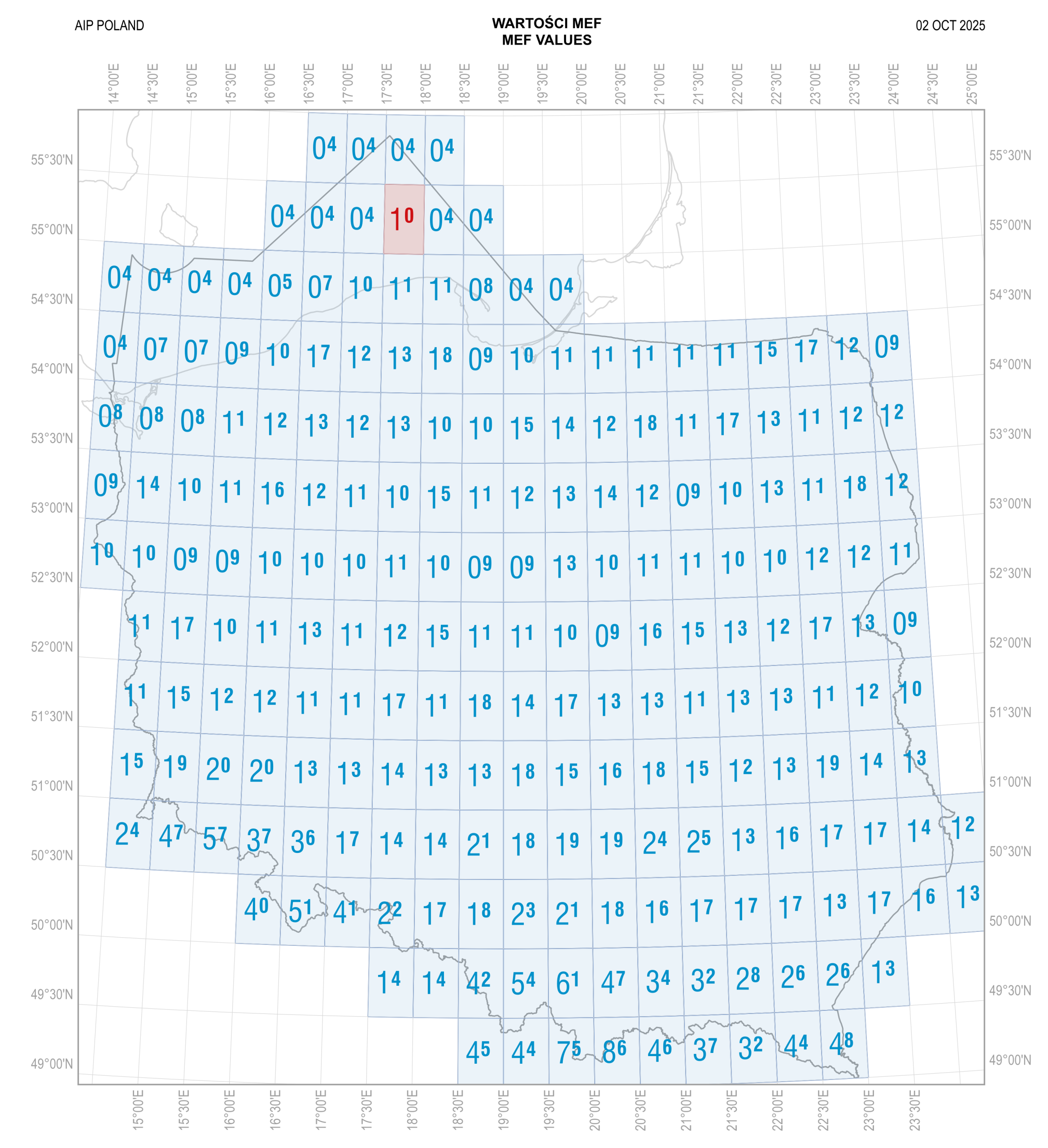 Aktualność MEF do następnego cyklu AIRAC należy sprawdzić w NOTAM